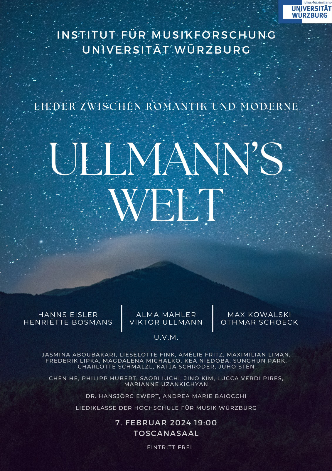 Ullmanns Welt: Lieder zwischen Romantik und Moderne – Konzert der Lied!Klasse Der Hochschule für Musik. Toscanasaal, 7.2.24, 19:00 Uhr