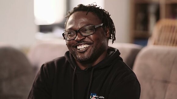 "Manchmal habe ich Studenten – du denkst: ok, er ist schon alt, er hat schon viel gemacht. Aber der kommt in deinen Unterricht: Der hat kein Rhythmusgefühl! Null! Dann denkst du erstmal: ‚Hä, wo hat denn der Mensch hier gelebt? Auf diesem Planeten, oder wie?’ (Lacht) Und erstaunlich ist, diese Leute, die so kommen, ganz straff, am Schluss kommen die ganz glücklich raus und sind ganz offene Menschen. Und können sich bewegen und trommeln und tanzen. Das ist einfach toll. Also wenn man richtig Interesse hat und will, dann kann man richtig viel lernen. Ich habe schon mit vielen Deutschen getrommelt, bei denen ich selber erstaunt war. Ich hab gesagt ‚Wie kommt das: du kannst sogar besser als ein Afrikaner trommeln?’ "