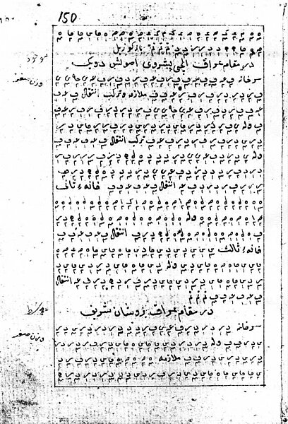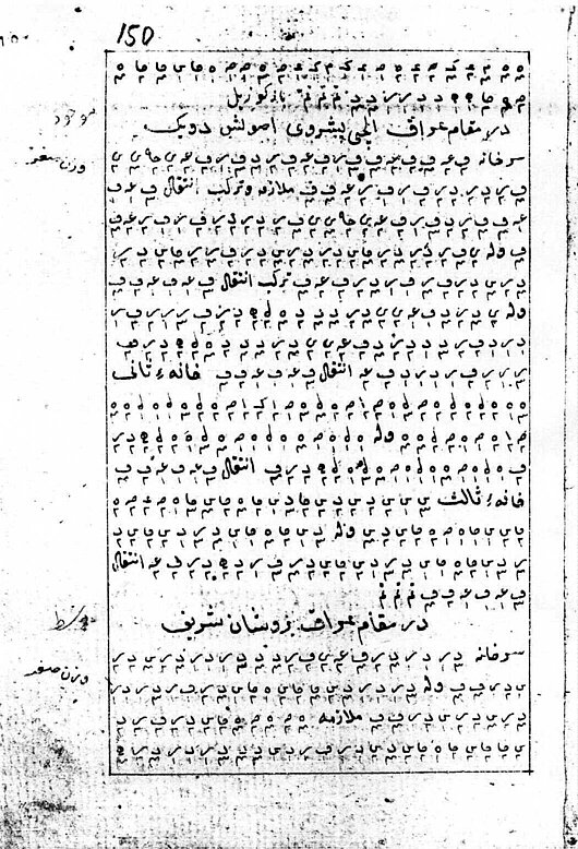 Faksimile aus Tr-Iti Arel 2768, fol. 150: »Irak Elçi Peşrevi«, Usul Düyek