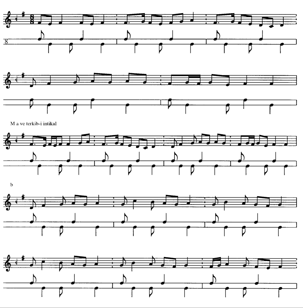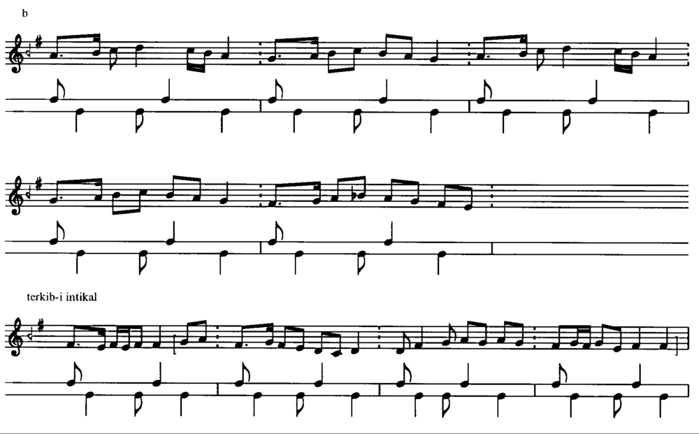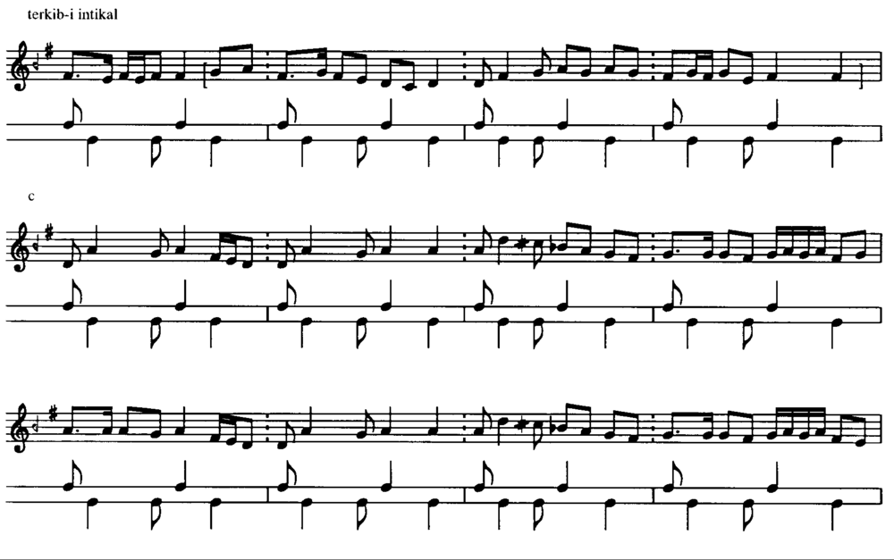 Transkription des »Irak Elçi Peşevi«, Usul Düyek,aus Tr-Iti Arel 2768