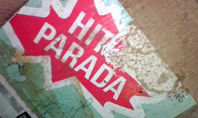 Bei kleinem Schallloch auf der inneren Verstärkung der Zarge aufgeklebtes Foto eines Paars