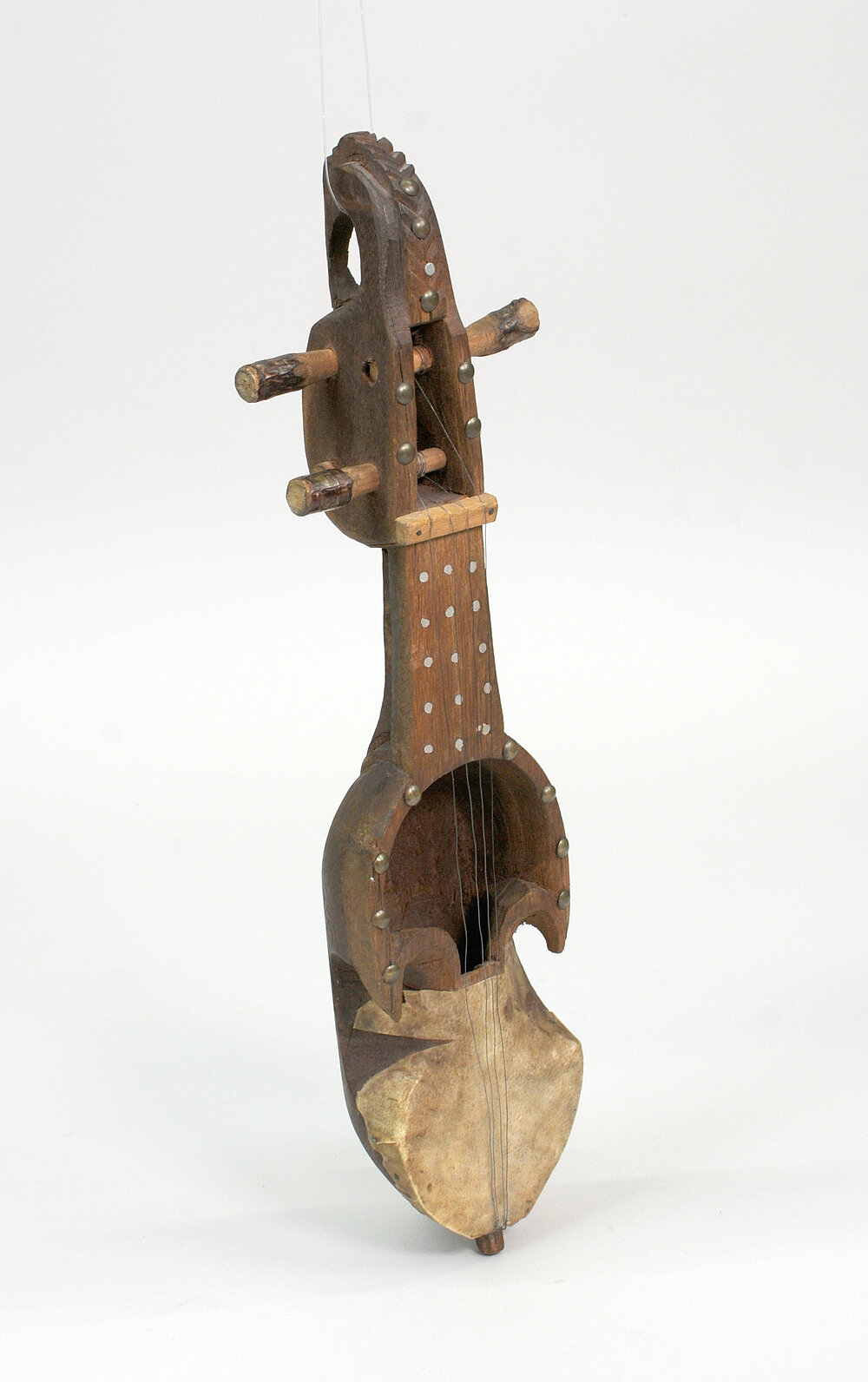 typische Form mit tailliertem Korpus und Fellbespannung der unteren Resonanzkastenhälfte