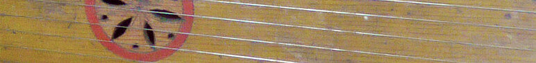 Saitenbefestigung: Anhängestock aus schwarz geb. Birnbaum. in voller Höhe auf die Zarge am Korpusende auf geleimt. 9 Anhängestifte.