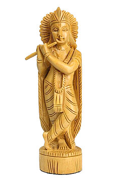 Krishna ist einer der beliebtesten Gottheiten im Hinduismus. Nach hinduistischem Glauben soll er als Avatar von Vishnu auf die Erde gekommen sein, um die Menschheit vor dem machtsüchtigen König Kansa zu bewahren und ihn zu töten. Während seines Erdenlebens setzt sich Krishna vermehrt für das Wohlergehen des Volkes ein und regiert später als König von Dwarka über diese Stadt auf der indischen Halbinsel Gujarat. Als er mit einem giftigen Pfeil versehentlich von einem Jäger an der Ferse getroffen wird, fährt Krishna im Jahre 3102 v. Chr. zurück ins Himmelreich. Die Flöte in seinen Händen steht sinnbildlich für die Menschheit, die erst durch den Atem der Götter zum Leben erweckt wird.