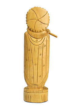 Die Figur hat eine Gesamtlänge von 13,1 cm, dabei nimmt der Sockel 1,7 cm und die Gottheit 11,4 cm ein. Die Flöte ist etwa 3,4 cm lang. Am Sockel gemessen hat die Figur eine Breite von 3,5 cm und eine Tiefe von 3,2 cm.