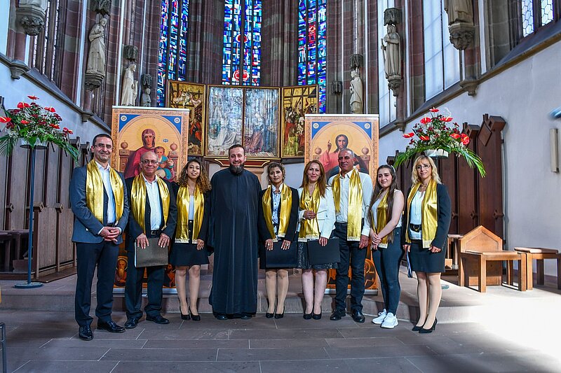 Die Melkitische Griechisch-katholische Kirche hat über eineinhalb Millionen Gemeindemitglieder. Die Mehrzahl davon lebt in Syrien, dem Libanon, Israel/Palästina, Ägypten und Jordanien. Daneben existiert eine stetig wachsende Diaspora in den USA, Australien und in Europa. Für die geschätzt siebentausend Gemeindemitglieder in Deutschland ist seit 2015 der aus Damaskus stammende und mittlerweile in Regensburg lebende Priester Mayas Abboud zuständig. An Wochenenden besucht er Orte in ganz Deutschland, um Gottesdienste abzuhalten, Taufen und Hochzeiten zu feiern und Gemeindemitglieder bei ihrer Ankunft in Deutschland zu unterstützen. Durch seine Arbeit hält er also nicht nur eine Kirche, sondern auch eine Gemeinschaft zusammen. Bei einem Gesprächskonzert in der Marienkapelle am Würzburger Marktplatz gibt er Studierenden des Instituts für Musikforschung Einblicke in den Ritus seiner Kirche. Mitgebracht hat er zwei auf Poster reproduzierte Ikonenbilder aus der in der Altstadt von Damaskus gelegenen Mutterkirche der Gemeinde, der Kathedrale Unserer Frau al-Niah, die auch al-Zeitoun Kirche genannt wird.