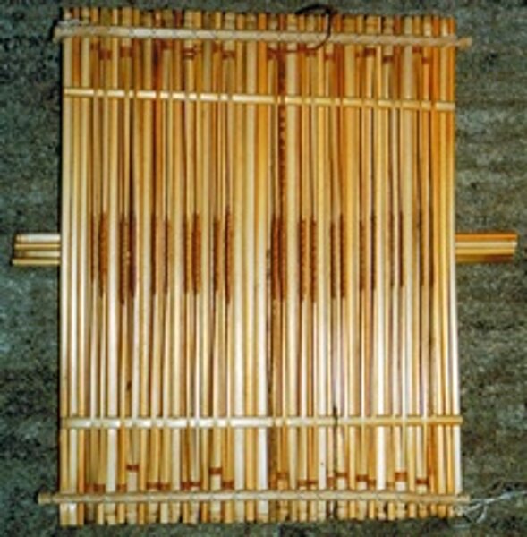 Floßzithern sind vor allem in Westafrika gebräuchlich, vor allem in Nigeria sind sie anzutreffen, aber auch in Ländern wie Uganda sind sie verbreitet. Beim oben abgebildeten Instrument wurden 33 längs nebeneinander liegende Bambusröhrchen an beiden Enden unter- und oberhalb durch dünne Bambusstreifen fixiert. Sie werden dabei kreuzweise durch Schnüre fest zusammengebunden, so dass insgesamt ein floßartiges Gebilde entsteht. An 22 der Röhren wurde jeweils längs ein dünner Streifen an der Epidermis abgelöst und an beiden Enden durch dünne Baststreifen umwickelt, um ein weiteres Ausreißen zu verhindern. Unter die abgelösten Streifen wurden in einem Winkel von 90 ° zwei dünne Bambusstäbchen nicht weit vom Ende der Streifen als Stege untergeschoben, so dass die Bambusstreifen als idiochorde Saiten frei schwingen können. Die 22 Saiten sind jeweils in der Mitte, der häufigsten Spielposition, zum Schutz beim Anreißen durch die Fingernägel und wahrscheinlich auch zum Stimmen mit Bast dünn umwickelt. Sie sind paarweise in Chören angeordnet. Beim zweiten Instrument finden sich 13 einzelne Saiten. Hier sind zusätzlich zwischen die einzelnen Resonanzröhrchen dünne Halme eingelegt, die wohl beim Spielen ein schnarrendes Nebengeräusch erzielen sollen. Auch an der Unterseite sind bei beiden einzelne Baststreifen abgelöst unter die rechwinklig zum Verlauf der Röhren vier Stäbchen aus Bambus untergeschoben sind, die vermutlich zur Stabilität des Instrumnents beitragen sollen. Die Spieltechniken in den einzelnen Regionen sind unterschiedlich, teilweise zeigen die Spielsaiten zum Spieler hin, bei anderen vom Spieler weg. Auf jeden Fall werden sie mit den Fingerkuppen bzw. Fingernägeln angerissen, wobei chorisch angeordnete Saiten meistens zusammen gespielt werden. Floßzithern dienen wegen ihrer geringen Lautstärke meistens als Begleitung zum Sologesang und eignen sich gut auf Grund ihres geringen Gewichts als Begleitinstrument bei Wanderungen. Öfter werden sie als Kinderinstrument sowohl bei Jungen als auch Mädchen erwähnt. [330, S.45 ff.]