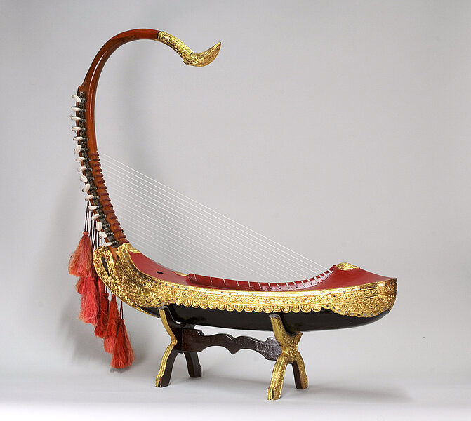 Ursprünglich war die Harfe Teil des Kammerorchesters bei Hofe zusammen mit dem patala (dem Xylophon), der palwe (Flöte) und der tayaw (Geige). hynin (Mundorgel) und mi gyaun (Krokodilzither) sind schon länger nicht mehr in Gebrauch. Die Aufgabe der Musiker war vor allem die Gesangsbegleitung.