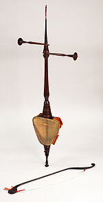 Gestrichen wird es mit einem Bogen aus Pferdehaaren. Diese sind nur locker mit den beiden Enden verbunden. Beim Spielen wird er untergriffig gehalten und es ist Aufgabe des Spielers je nach gewünschtem Timbre und Lautstärke des Tones die Bogenspannung zu verändern.
