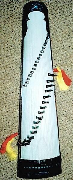 Organologisch gehört das Instrument zu den einsaitigen Kasten- oder Röhrenzithern, dessen Resonanzkörper aus einem länglichen, leicht konisch zulaufenden Schallkörper, manchmal aber auch aus einem Bambusrohr besteht. Am breiteren Ende ist die Saite, heute aus Stahl, früher aus Seide, an einem Wirbel befestigt. Sie verläuft über die gesamte Länge über dem Korpus zum anderen Ende, wo sie an einem biegsamen Stab aus Wasserbüffelhorn befestigt ist, der durch einen kleinen Schallkörper aus getrocknetem Kürbis gesteckt ist.
