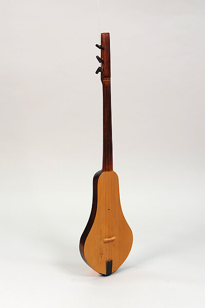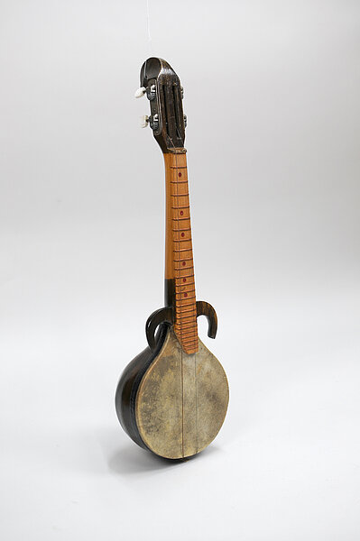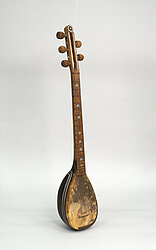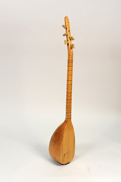 Bei dem neben abgebildeten Instrument handelt es sich vermutlich um einen Tambur aus dem kaukasischen Raum. Er ist sehr einfach aus einem Stück Nussbaum- oder Maulbeerbaumholz herausgearbeitet, hat Bünde aus Metalldraht, und fünf Metallsaiten, die an vorder- und seitständigen Wirbeln befestigt sind.