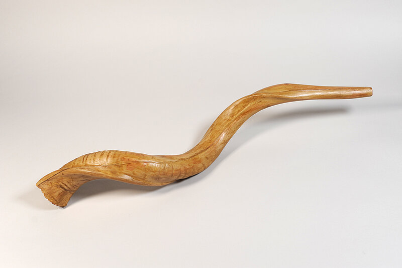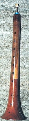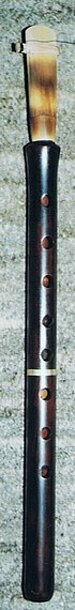 Das links abgebildete Instrument ist die Nachbildung eines Kuduhorns aus Kunststoff. Das Mundstück ist durch Abschneiden der Röhre und durch leichtes, trichterförmiges Ausformen entstanden. Die Anblastechnik entspricht der eines Blechblasinstruments. Der Ton ist weittragend und durchdringend. [314][315]