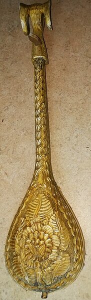Diese erste klassische Form hatte 20 - 24 diatonisch gestimmte Metallsaiten. Der Korpus war aus einem Stück Holz herausgearbeitet mit einer Decke aus Fichte oder Tanne, auch die Wirbel waren aus Holz gefertigt. Sie wird im Sitzen gespielt, parallel zum Körper des Spielers oder leicht zur Seite hin geneigt, um eine bessere Sicht auf die Saiten zu haben. Der untere Teil wird dabei auf die Knie gestützt, weil die Instrumente ein beträchtliches Gewicht haben. Die linke Hand umgreift den Hals und zupft die darüber verlaufenden Begleitsaiten, die rechte Hand spielt die Melodiesaiten. Diese Spieltechnik ist weitgehend bis heute erhalten geblieben.