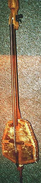 Eine Besonderheit bei diesem Instrument ist die Tatsache, dass es auf Grund der besonderen Form sowohl gezupft als auch gestrichen werden kann. Es verfügt auch über einen Steg, der die Schwingungen der Saiten auf den Korpus überträgt.