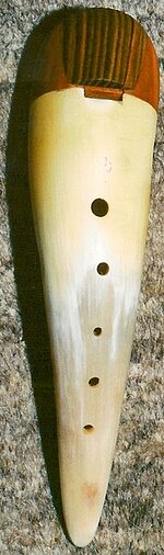 Bei der Herstellung wird z.B. aus einem hohlen Kuhhorn, wie bei nebenstehendem Beispiel ersichtlich, am breiteren Ende das Labium eingeschnitten. Das spitze Ende des Horns bleibt unverändert. In die breite Öffnung ist hier ein schnabelförmiges Mundstück eingefasst, das einen Windkanal freilässt, durch den der Luftstrom auf das Labium geleitet wird. In die Oberseite sind fünf Löcher unterschiedlicher Größe eingebohrt. Für das Mittelalter gibt es keinen Beleg dafür, dass eine Instrumentenfamilie mit verschiedenen Stimmlagen existiert hat und welche Tonarten gespielt werden konnten.