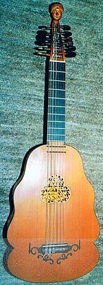 Dieses Instrument war fast ausschließlich in Spanien und Süditalien von der Mitte bis Ende des 16. Jahrhunderts in hoher Blüte, bevor es von der Gitarre mehr und mehr verdrängt wurde. Es hat acht bis zehn geknüpfte Darmbünde, einen meist flachen Boden, schmale Zargen (etwa die Hälfte einer heutigen Gitarre) und einen nur leicht eingebuchteten Korpus. Die Kopfplatte mit den hinterständigen Wirbeln ist nur schwach nach hinten geneigt und wirkt wie eine Verlängerung des Halses. Die Vihuela verfügt über eine einzelne oder doppelchörige Diskantsaite, die restlichen Chöre sind immer doppelt, wobei die unteren auch in Oktaven gestimmt sein können. Es wurden an einem Querriegel befestigte Darmsaiten verwendet, daher ist eine gewisse Ähnlichkeit des Klanges mit der Laute festzustellen. Wie diese wurde auch die Vihuela als virtuoses Soloinstrument oder als Generalbassinstrument aus Tabulaturen gespielt und war in der höfischen Gesellschaft ein angesehenes Instrument. Im Gegensatz dazu stand die viersaitige doppelchörige Gitarre, die mehr als Volksinstrument angesehen wurde. Da die Vihuela in verschiedenen Größen gebaut wurde, ist die angegebene Stimmung nur als Grundstimmung zu verstehen. [8]