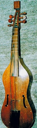 Sie hat sechs Saiten, die in Quarten gestimmt sind mit einer Terz in der Mitte, einen langen Saitenhalter, ein breites Griffbrett mit meist sieben Bünden, die aus Darm geknüpft sind, hohe Zargen, mehrere Querbalken im Korpus und C-förmige Schalllöcher. Das verwendete Holz ist durchweg dünner, die Saiten sind leichter, länger und von geringerer Spannung als bei der Violine.