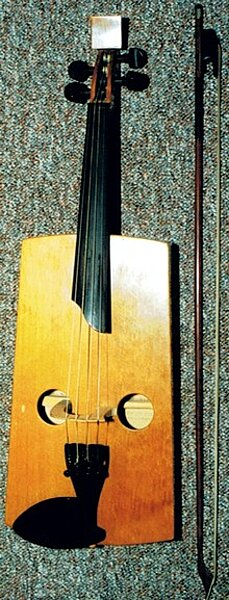 Diese dreisaitige Fidelvariante besitzt einen birnenförmigen Korpus und einen gerundeten Boden. Im Gegensatz zur Violine verläuft das Griffbrett über der Korpusdecke und verbreitert sich nach der Form des Schallkörpers. Korpus und Hals sind aus einem Stück Holz gearbeitet, der Wirbelkasten mit den seitenständigen Stimmwirbeln schwingt nach hinten.