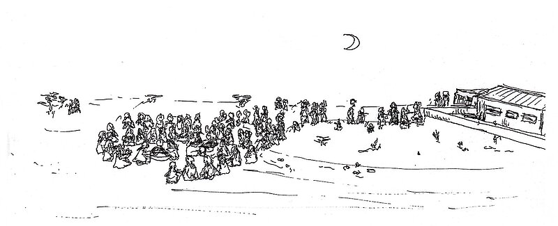 Die Zeichnungen auf diesen Seiten stammen von Erhard Schulz. Sie waren teilweise in der Ausstellung "Sahara – ein Résumé" im Städtischen Museum Kitzingen vom 4. Juni bis 31. Dezember 2016 zu sehen.