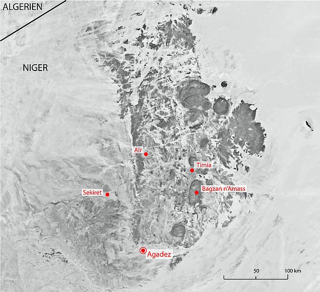 In den 1980er Jahren hatte Schulz mehrere Forschungsreisen in den Nordost-Niger unternommen. Die folgenden Aufnahmen entstanden während dieser Reisen, besonders aber während eines dreijährigen gemeinsamen Projekts mit Aboubacar Adamou (Abb. 2) zur traditionellen Nutzung von Vegetation im Aïr-Gebirge. Der aus Agadez stammende Adamou, der an der Abdou-Moumouni-Universität Niamey unterrichtete, von 2001 bis ?? Dekan der Fakultät für Literatur- und Humanwissenschaften an derselben Universität war und später das Amt des Hochschulministers, des Ministers für Forschung und Technologie und des Bildungsministers bekleidete, hatte wenige Jahre zuvor ein Buch mit dem Titel Agadez et sa région. Contribution à l’étude du Sahel et du Sahara nigériens (= Études Nigériennes 44, IFAN, Paris 1979) veröffentlicht und sich als profunder Kenner der Natur und Geschichte seiner Heimatstadt, des Aïr-Gebirges, des umliegenden Flachlandes, der dort beheimateten Volksgruppen, deren Traditionen, Sprachen und sozialen Strukturen erwiesen. Laut Erhard Schulz war Adamou bei der dortigen Bevölkerung hoch angesehen, so dass Schultz in Adamous Schlagschatten ebenfalls ihr Vertrauen genoss.