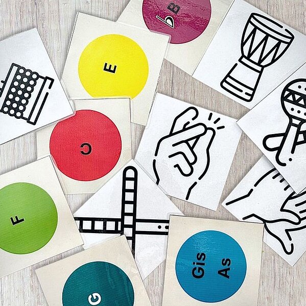 Das Spiel Memory mit dem Zuordnen von zusammengehörenden Inhalten ist den meisten Schüler*innen schon in jungen Jahren bekannt. Grundsätzlich kann spielerisches Lernen dabei helfen, motivierter theoretische Inhalte zu wiederholen und zu festigen. Memorys bieten zudem die Möglichkeit von einem alleine, zu zweit, in Teams etc. gespielt zu werden und können so an die gegebene Gruppengröße flexibel angepasst werden. Auch inhaltlich ist durch Aussortieren oder Hinzugeben weiterer Memory-Paare Differenzierung möglich. Inhaltlich sind hierbei keine Grenzen gesetzt: Zuordnung italienischer Musikfachbegriffe und Bedeutungen, Dreiklänge und Dreiklangstöne, Notenwerte als Bild und Wort, Instrumente als Bild und Wort ...