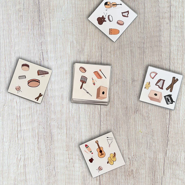Damit es Grundschulkindern leichter fällt, Instrumentennamen zu lernen und zu sichern, ist Dobble Instrumente ein perfektes Spiel, das noch dazu eine Menge Spaß verspricht. Die Spiel-Idee beruht auf dem Spiel Dobble erschienen im Verlag Asmodee. Nicht nur die Instrumente stehen hier im Mittelpunkt sondern auch Konzentration und Reaktion – denn aufgepasst, wer am schnellsten beim Finden und Benennen des doppelten Instrumentes ist, gewinnt!