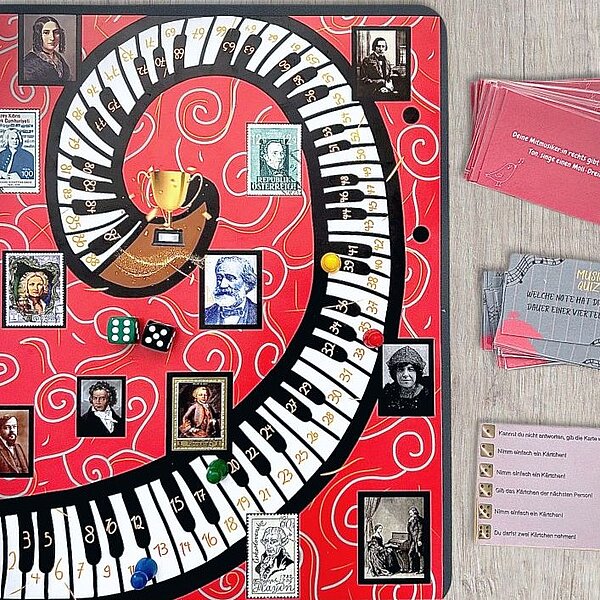 Das spielerische, musikbezogene Brettspiel mit Quizcharakter für eine außerschulische Zielgruppe (13–28 Jahre). Bei spannenden Quizfragen und witzigen Gruppenaufgaben werden sowohl musiktheoretisches Wissen als auch der Spaß an der Musik zusammengeführt.
