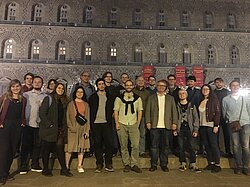 Giovanni Gherardi da Prato schildert in seinem Paradiso degli Alberti, wie Philosophen, Theologen und Naturwissenschaftler sich in einer florentinischen Villa treffen und beim verzaubernden Klang von Landinis Orgelspiel diskutieren. Bei der Exkursion nach Florenz vom 6. bis 11. Oktober 2019 machten sich Studentinnen und Studenten der Musikwissenschaft (Universität Würzburg) und der Gitarre (Hochschule für Musik Würzburg) unter der Leitung von Dr. Hansjörg Ewert und Prof. Jürgen Ruck auf, um solchen (und späteren) glanzvollen Zeiten nachzuspüren – eine Reise zu prunkvollen Palästen, mit bannender, mikrotonaler Musik im Handgepäck und mit einem dramatischen Sonnenaufgang bei der Abreise frühmorgens in Deutschland, der den angemessenen Auftakt für eine bunte Studienfahrt bildete.