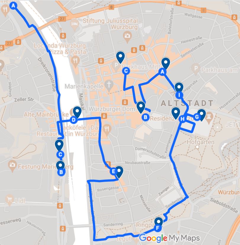 Die verschiedenen Aspekte, die in der Karte und dem Stadtspaziergang dargestellt sind, resultieren aus dem individuellen Interesse der Studierenden. Wir erheben damit keinen Anspruch auf eine Vollständigkeit, die angesichts des sich stets wandelnden kulturellen Lebens einer Stadt eh nicht zu erreichen wäre. Verstehen Sie die Karte und den Spaziergang also eher als ein „Work-in-Progress“ und als ersten Impuls dazu Würzburg als Ort musikalischer Vielfalt zu entdecken: Sei es vorm heimischen PC mithilfe der Karte oder in den Straßen Würzburgs mit dem Smartphone in der Hand auf der Route des Stadtspaziergangs. Wir wünschen Ihnen viel Spaß dabei und freuen uns über Ihr Feedback, Ergänzungen und Verbesserungsvorschläge, die Sie gerne an cornelia.guenauer@uni-wuerzburg.de schicken können.