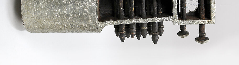 Korpusund Hals insgesamt eingefasst in ornamentale Blechfolie
