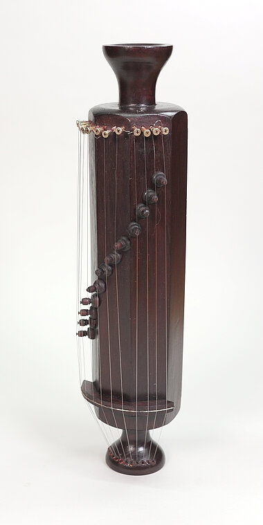 12 Saiten mit mobilen Stegen (als Saitenkanäle dienen Schlitzschrauben)