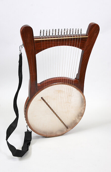 Leiern dieses Typs werden im globalen Handel (z.B. von "ensoul", Florida, früher "Mid East") unter der Bezeichnung "Nevel Harp" verkauft. Mit dem biblischen Instrument nevel besteht kein Zusammenhang (außer, dass es sich um eine Leier handelt).