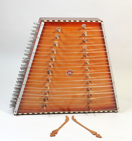 Santoor (der, seltener das). Symmetrisch trapezförmige Kastenzither (Hackbrett). Der Typ wurde aus dem persischen Raum übernommen, vgl. Santur De 130. In die hindustanische Raga-Musik Instrument wurde das Instrument durch den Kashmir-Musiker Shiv Kumar Sharma (1938–2022) eingeführt, der der berühmteste Exponent des Instruments war. Obwohl es sie immer in der indischen Hofmusik gab, waren Saiteninstrumente mit fixierter Tonhöhe, in der jüngeren Geschichte nicht prominent vertreten wegen des stilistischen Ideals eines von Vokaltechniken abgeleiteten Portamentos. Der indische Santoor hat keine festgelegte Stimmung, sondern wird (in drei Oktavregistern) je nach erfordertem Raga umgestimmt. Möglich sind sowohl diatonische wie chromatische Stimmungen.