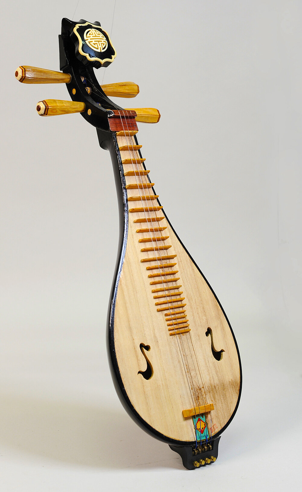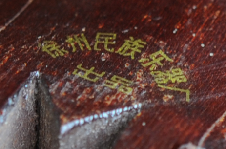 Hersteller: Auf dem Hals über dem Wirbelkasten: "Xuzhou Nationale Musikinstrumentenfabrik"