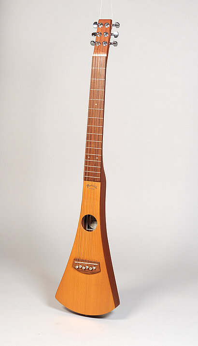 Zettel: "The | Backpacker | Guitar | Serial # 80, 232 | USE EXTRA LIGHT STRINGS ONLY | Manufactured by | The Martin Guitar Co. | Made in Mexicon | U.S. Desing Patent | No. D270.543"