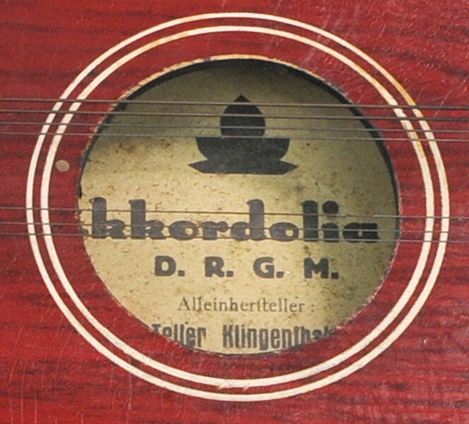 Zettel: "Akkordolia III, D. R. G. M. | Alleinhersteller: | Otto Teller Klingenthal i. Sa."