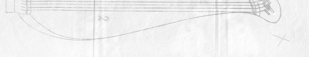 Der Hersteller hat Name (dazwischen Lyrasymbol), Ort und Jahr im Boden unter dem Schallloch mit zwei Tuschefarben aufgezeichnet (schwarz/rot).