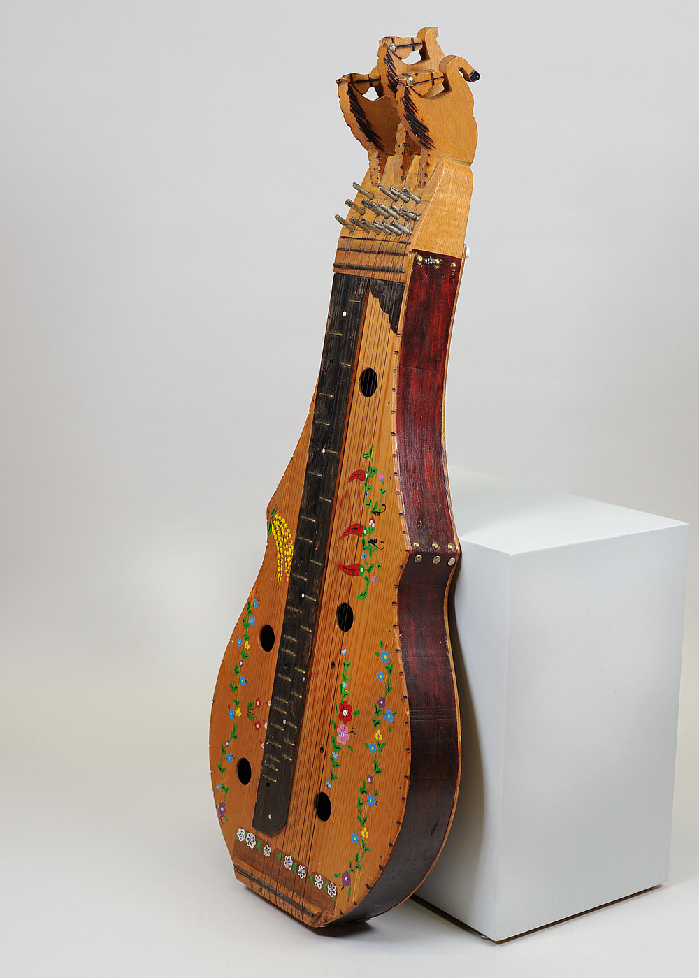 Am Stimmstock ansetzend 3 Pferdefiguren, bei 2 sind die Vorderhufe abgebrochen