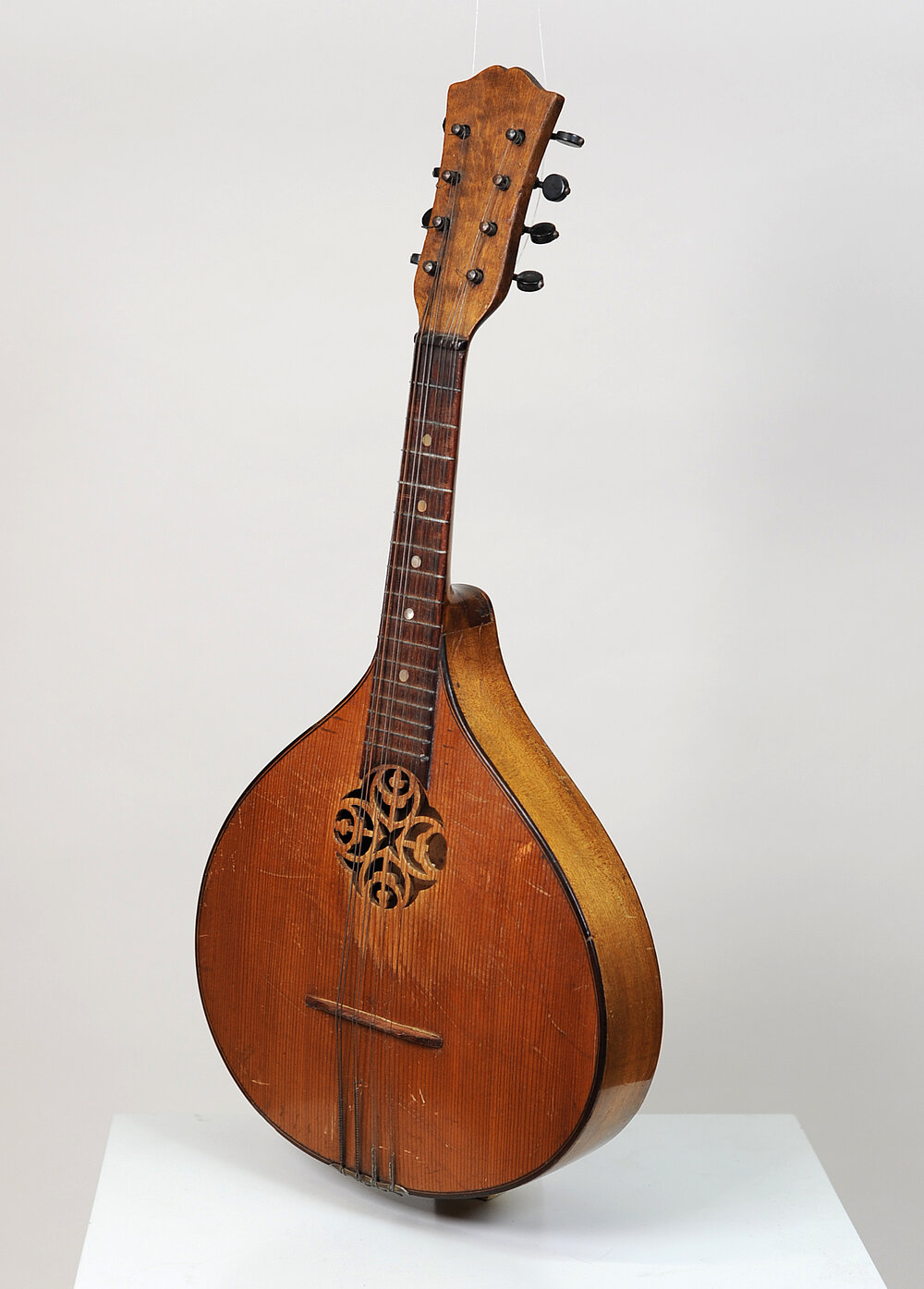 Im Saitenhalter eingeritzt der Besitzername: "P. Mueller"