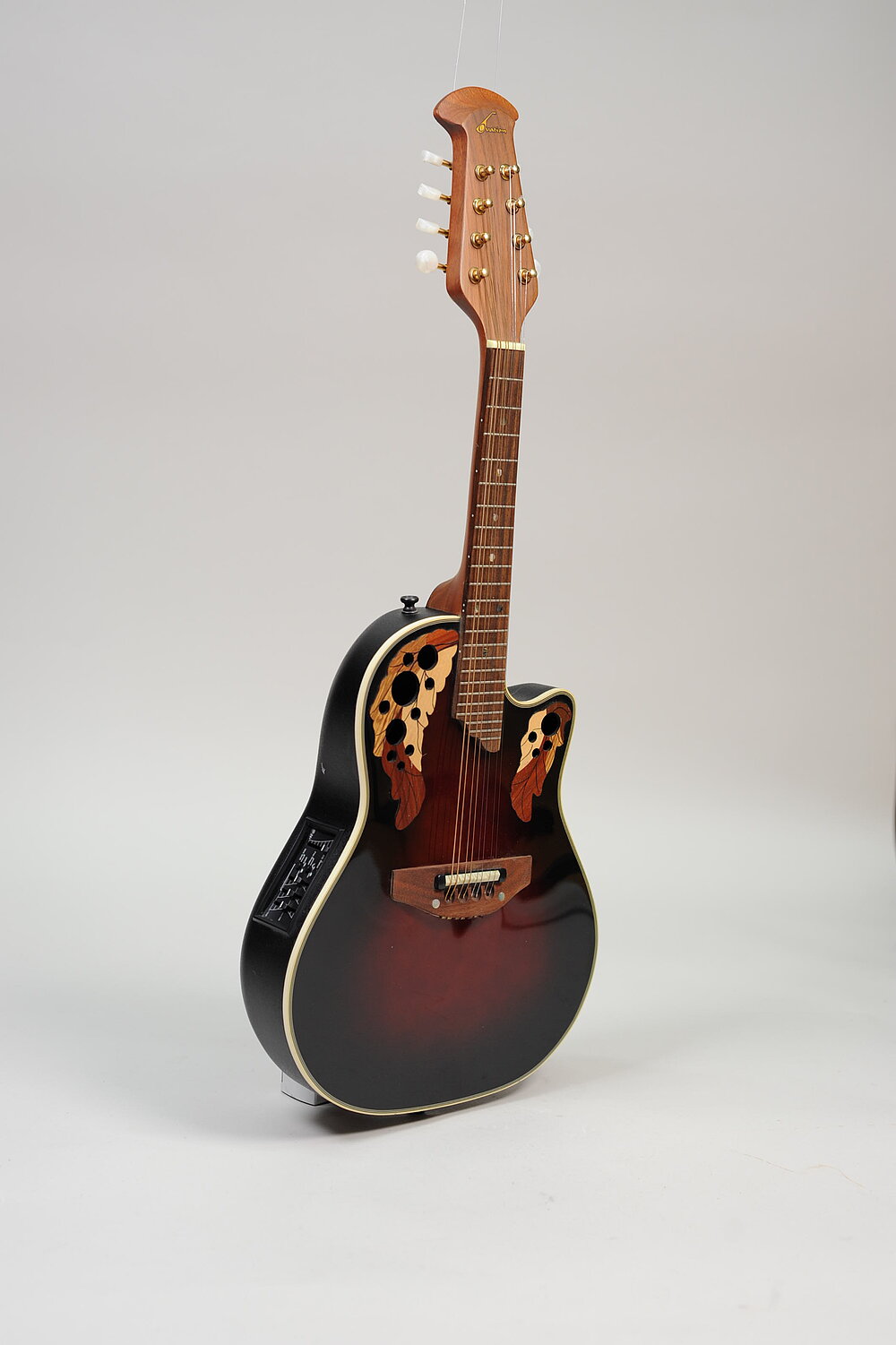 Elektroakustisches Instrument mit integriertem Vorverstärker und Reglern an der linken Zarge. Der OP24+-Vorverstärker verfügt über drei EQ-Bänder mit der Möglichkeit, das Mittenband entweder auf eine Mittenfrequenz von 400Hz oder 1KHz einzustellen. Außerdem besitzt er eine Pre-Shape-Schaltung, die die Bässe und Höhen anhebt und Rumpeln unter 40 Hz unterdrückt. Die MCS148 Mandoline ist mit einem Thinline-Tonabnehmer ausgestattet. Die Mandoline hat den abgerundeten Boden, für den Ovation-Gitarren bekannt sind.