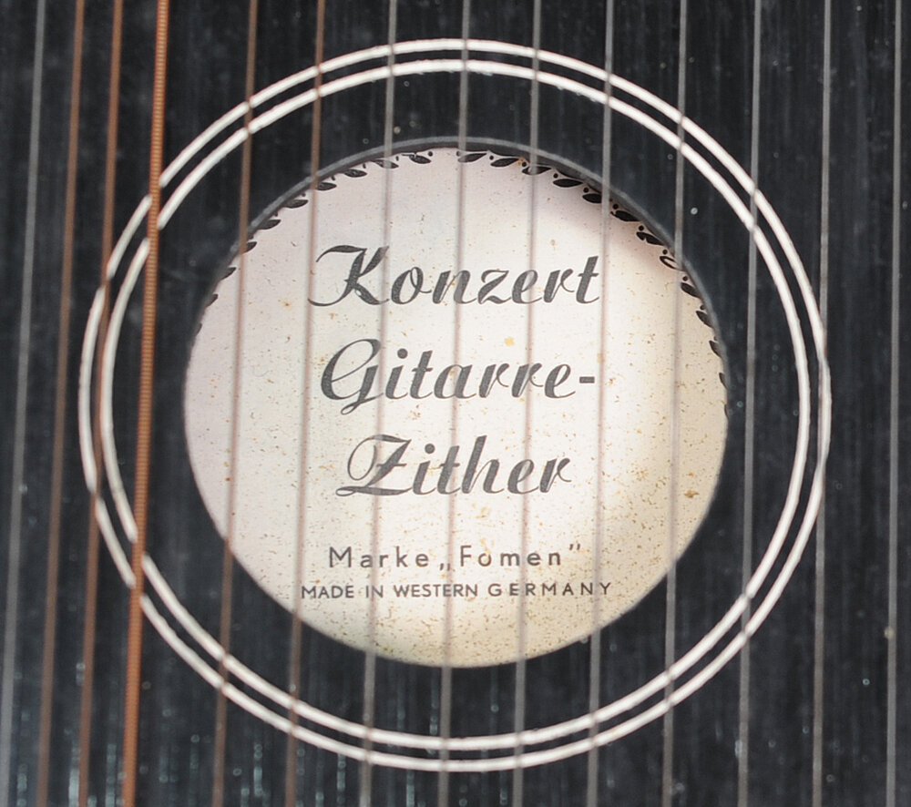Zettel: "Konzert | Gitarre- | Zither | Marke "Fomen" | MADE IN WESTERN GERMANY"