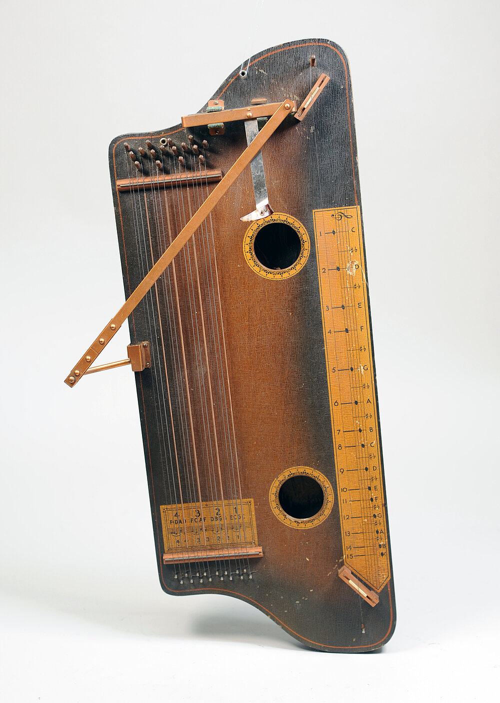 Eine Melodiesaite, vier Akkorde (zu je vier Saiten: C-, G-, F-, D-Dur). Slider und Plektrum sind an einem Gelenkarm angebracht. Der Slider wird im Ruhezustand in zwei befilzte Haltelager gesteckt.