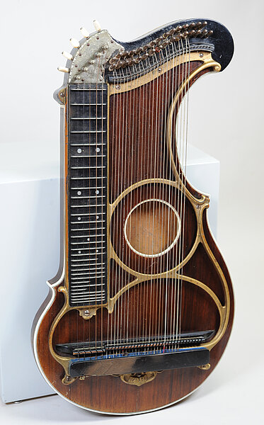 Arion-Zither (Korpus mit beidseitiger Ausbauchung) mit aufgesetztem Metallrahmen