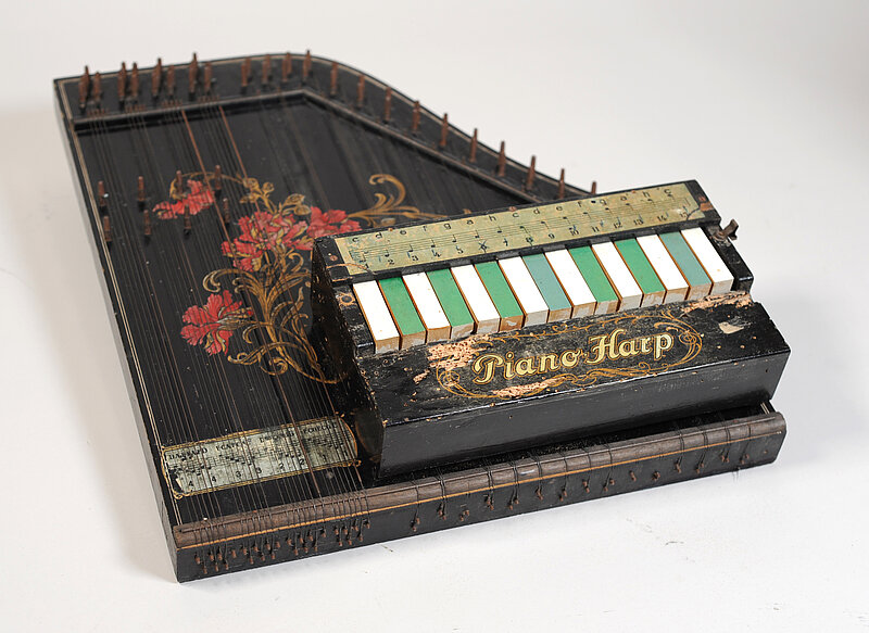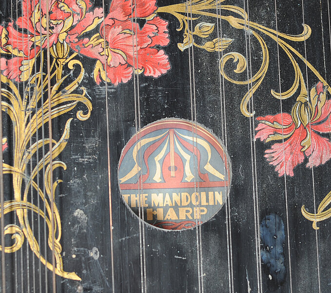 Zettel unter dem Schallloch: "THE MANDOLIN | HARP". Kein Hersteller. USA, ca. 1910.