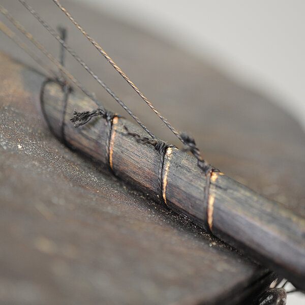 4 Saiten, die am Teil der Saitenhalterleiste befestigt sind, der über der Decke liegt