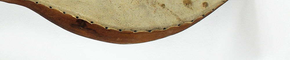 Decke aus Tierhaut (Schaf?) mit drei kleinen Schallöchern im obersten Sechstel