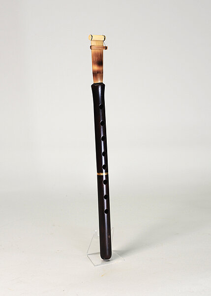 8 vorderständige Grifflöcher (5 im oberen, 3 im unteren Teil), ein Daumenloch