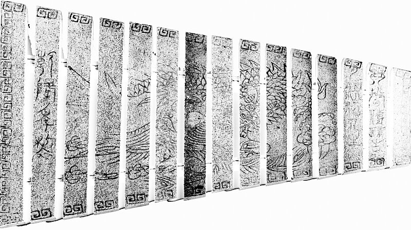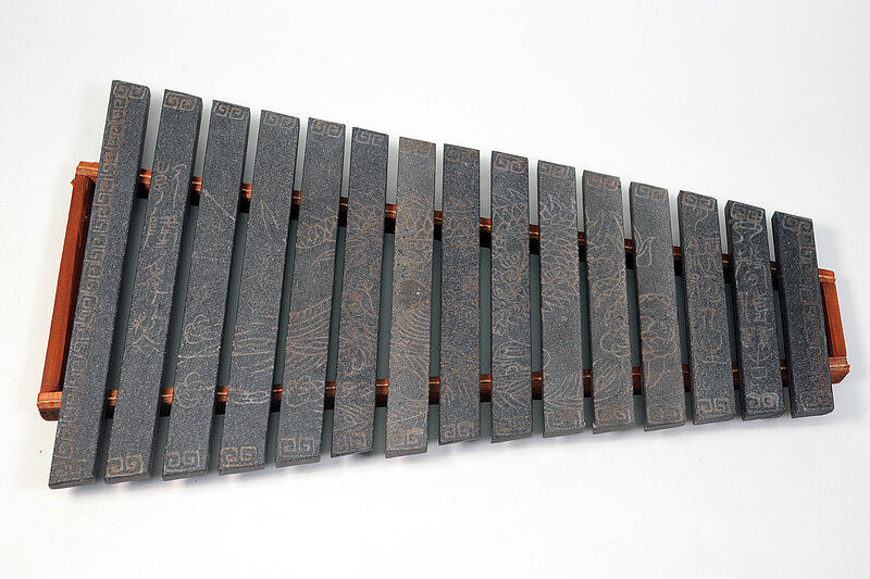 Figürliche Darstellungen finden sich über die Klangplatten hinweg geführt.