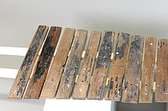Restaurierung (17.–21. März 2025, Oliver Wiener): Die Klangstäbe sind in gebohrten Kanälen auf Nägel aufgesetzt, bzw. werden auf der gegenüberliegenden Seite durch Nägel in Position gehalten. Stark korrodierte und abgebrochene Nägel wurden durch verzinkte gleichen Maßes ersetzt. Risse in den Auflagebrettern der Klangplatten wurden mit Baowachs gefüllt bzw. abstehende gerissene Teile wurden mit Fischleim fixiert. Die brüchigen Gummistreifen-Auflagen unter den Klangstäben und die darunter nur noch fragmentarisch erhaltene Kunststoff-Schnur wurden durch Fahrradreifen und rote Schnur ersetzt. Die durch Farbspritzer verschmutzten Oberflächen der Klangplatten wurden gereinigt, angeschliffen und dunkelbraun gebeizt.