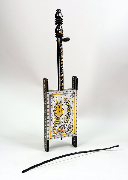 Decke: Taubenmotiv mit Lackstift (schwarz) und Glitzerlack (gold)
